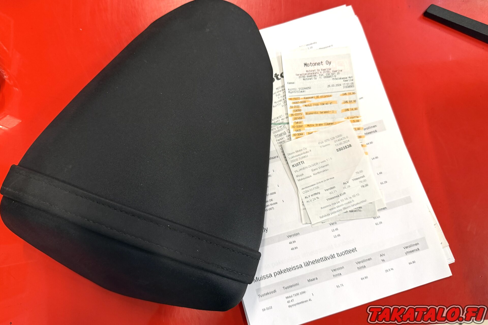 Viimeisin omistaja on säilyttänyt kuitteja nivaskan vuodesta 2022 lähtien. Kawa on huollettu nyt keväällä 2026, joten se on valmiina kauden koitoksiin. Staattori ja jännitteensäädin on uusittu vuonna 2024. Eturengas on hyvä, mutta takanen alkaa olemaan vaihdon tarpeessa.