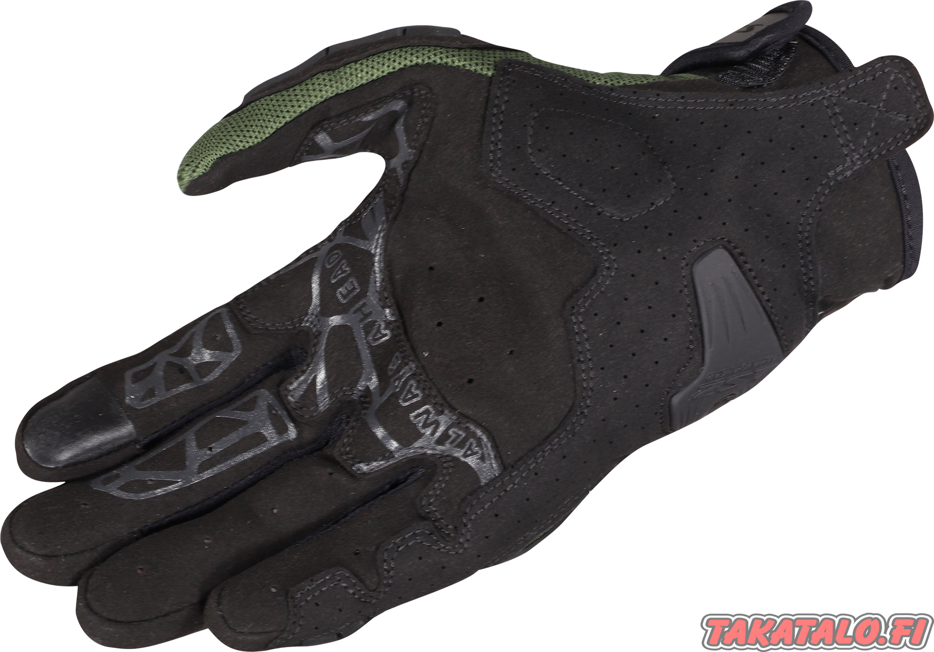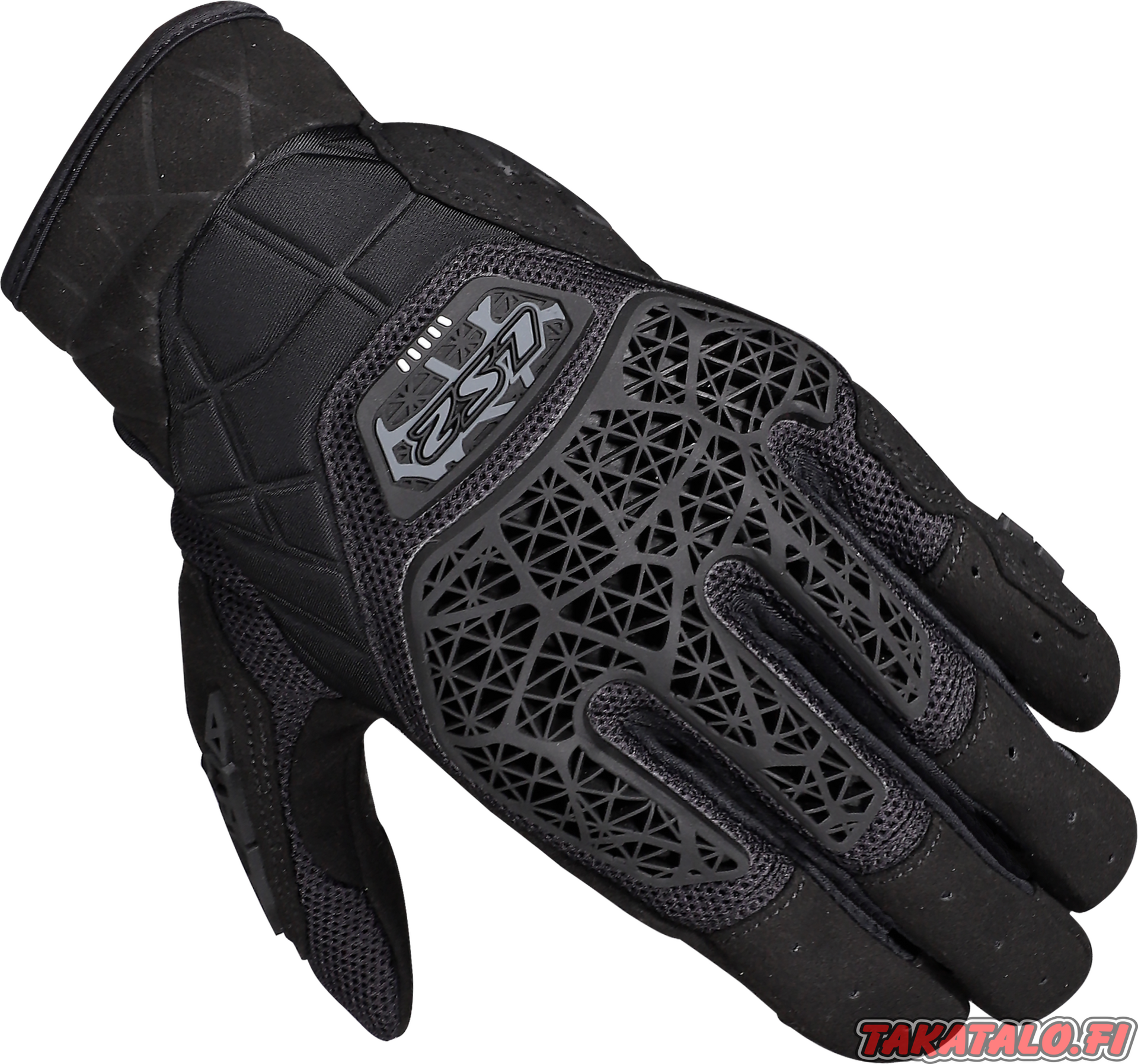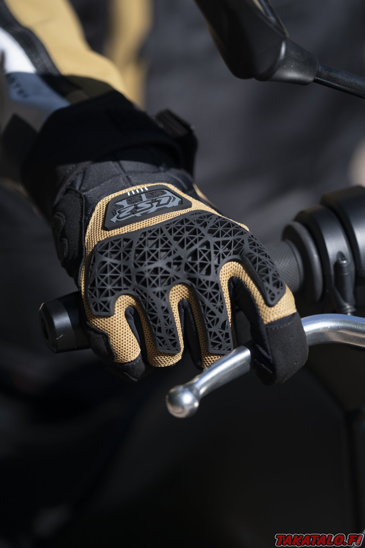 Hanska on varustettu iskunvaimennuskykyisillä TPR-rystyssuojilla ja kämmenen liukusuojilla, jotka tarjoavat sertifioitua suojaa matkantekoon. Perforoitu kämmenosa ja sormien ilmanvaihtoalueet pitävät kädet viileinä, ja silikonipainatukset takaavat lipsumattoman otteen ohjaustangosta.