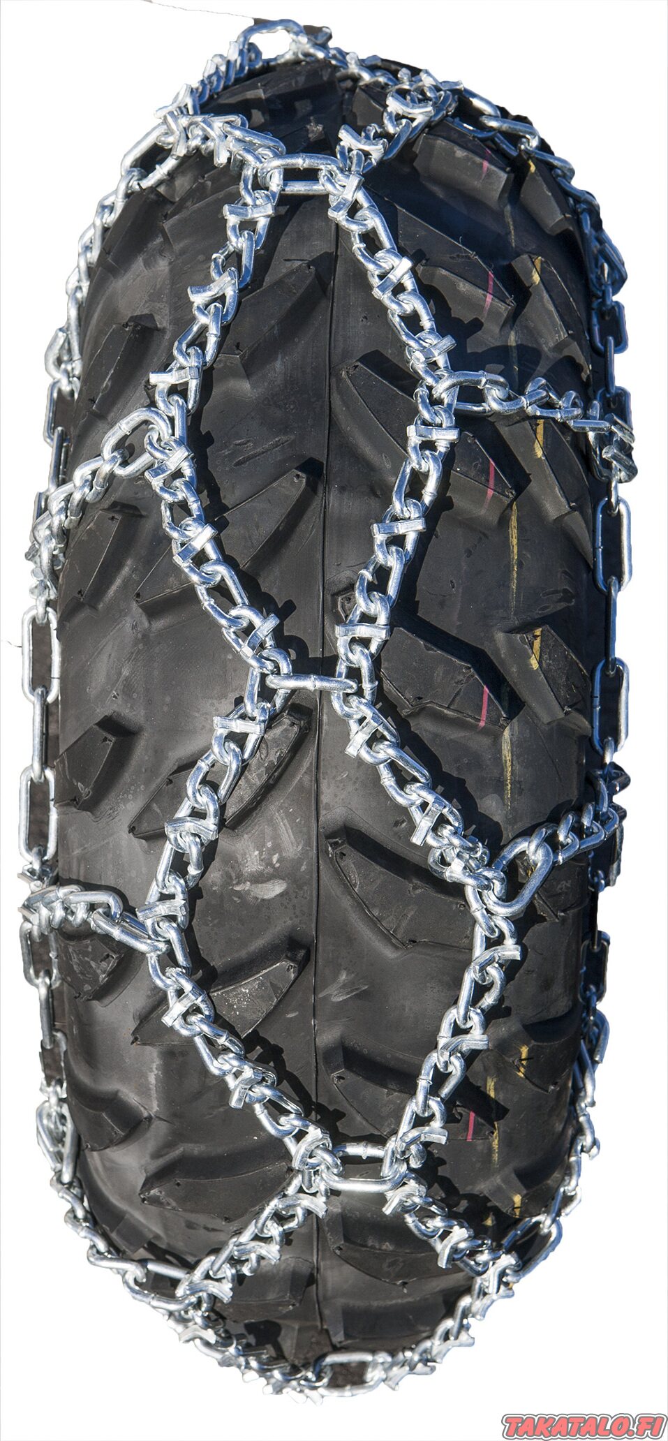 Timanttikuvioinen mönkijän lumiketju on oikea valinta, kun kaipaat lisäpitoa jäiselle pinnalle. Näissä ketjuissa on V malliset hakaset, jotka purevat jäähän.