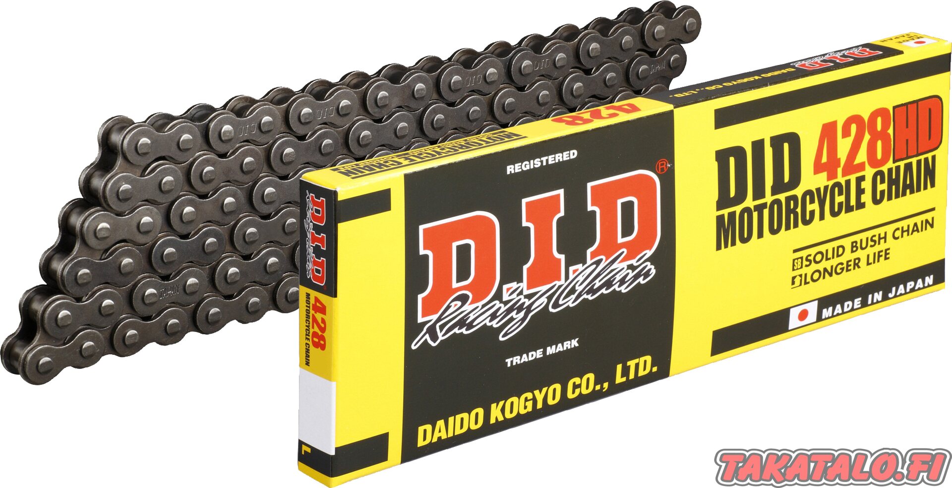 Opis produktu428HD ketjut ovat vahvistetut ketjut esim. motocrosskäyttöön jousilukolla max. 125Cc moottoreille. Vetolujuus 2503kg ja paino per 100 lenkkiä noin 1kg. 428HD ketjussa ei ole tiivisterenkaita ja jousilukollisena se on helppo asentaa ilman erikoistyökaluja. Ketju toimitetaan esivoideltuna ja suosittellemme rasvausta 300-500km välein tai tarpeen mukaan. Huomioithan, että voit joutua lyhentämään ketjua, jotta se sopii sun pistooliin!