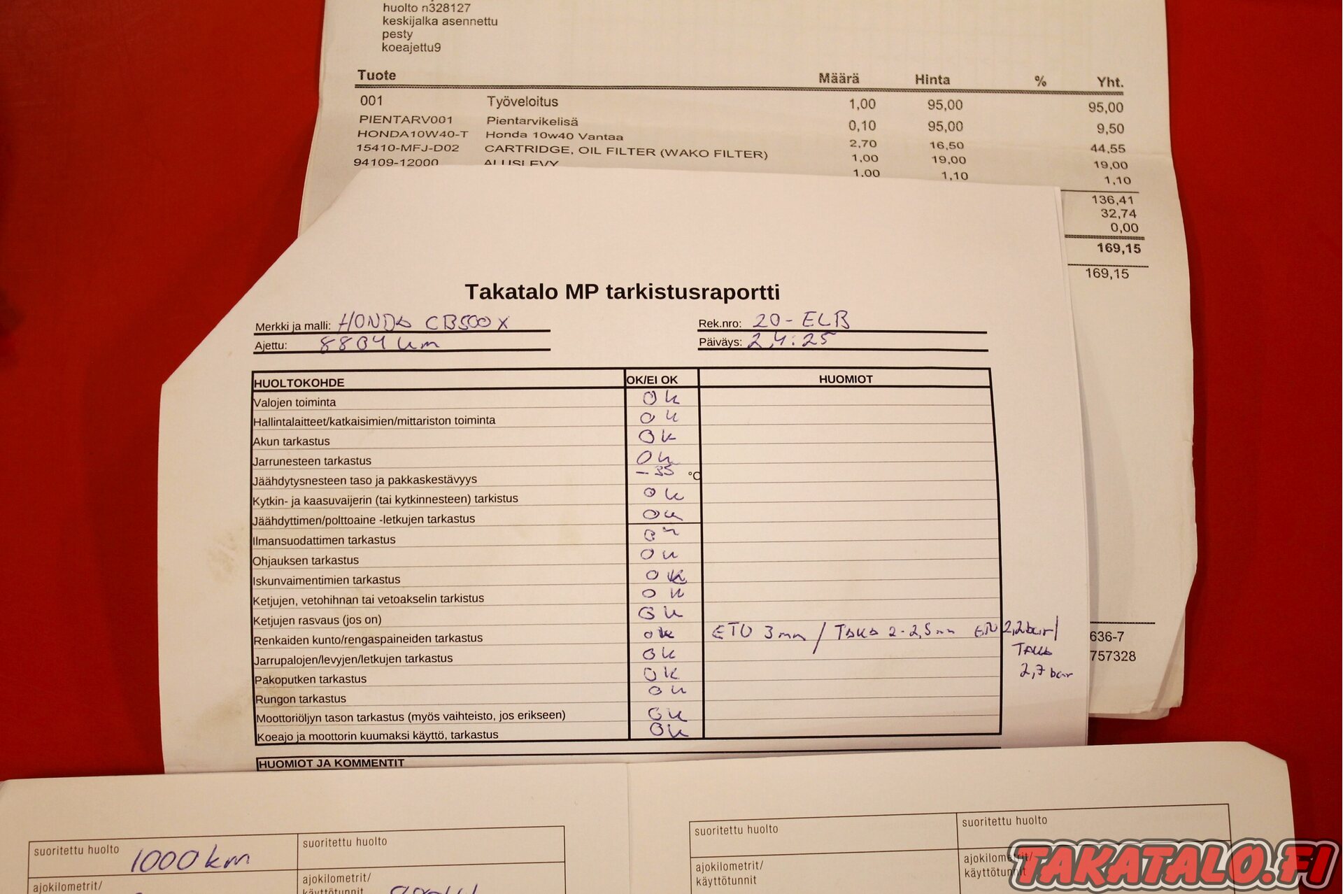 Tällä Hondalla on tietä nautittu vaivaiset 9971 km ja huoltokirja on mukana. Vihosta löytyy tonnin huolto, sekä meillä tänä keväänä tehty 8800km huolto ja molemmista myös kuitit mukana.