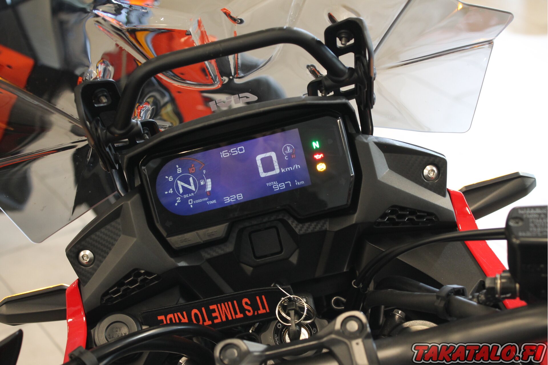 Pyörää on myös varusteltu ja kolmen laukun lisäksi löytyy isompi tuulilasi, sekä siistit kaatumaraudat. Tätä saa ajaa myös A2 kortilla!