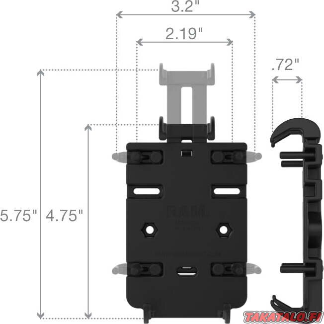 RAM Quick-Grip™ Phone Holder with B-Series Ball is an extremely sturdy and versatile mount designed to keep your phone securely in place. Fits devices 12.1 cm – 14.6 cm high and 5.6 cm – 8.3 cm wide.