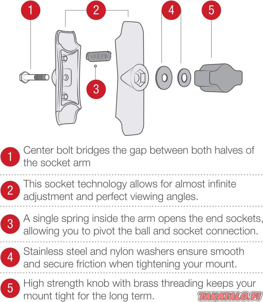 Arm made of marine-grade aluminum, allowing you to connect a Ram Mount holder to the base.